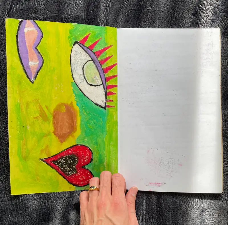 Libreta personalizada con crayón, rotulador y fineliner.