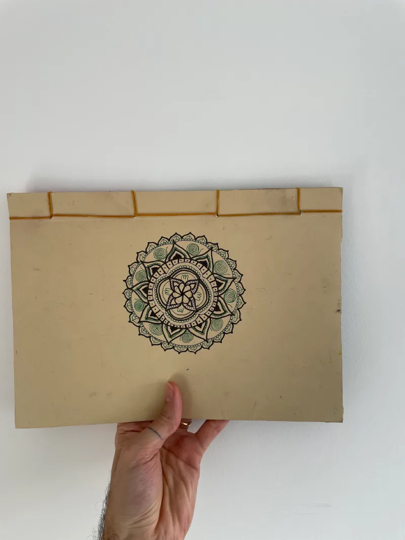 Libreta personalizada, tamaño A4, con cosido según técnica de encuadernación japonesa.